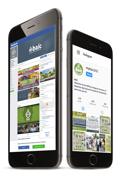 Social Media has become very important for keeping people up-to-date on world-wide information. The Bahamas Agricultural and Industrial Corporation can be found on several social media platforms to keep the public informed on every upcoming event and news pertaining to agriculture. Like and follow our pages to stay up-to-date on all information that is BAIC.